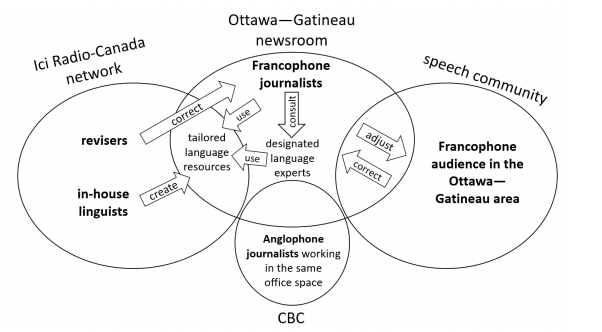 The “language expertise” (Rampton 1990) is distributed within the newsroom to a few journalists chosen through hierarchy. Ici Radio-Canada’s audience also continuously assess the language expertise of all journalists producing content for the French-speaking network.